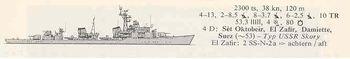 list error: <br /> list (help) 2 × 2 - 130 mm (5.1 in) B-2LM guns 1 × 2 - 85 mm (3.3 in) AA guns 7 × 1 - 37 mm (1.5 in) AA guns 2 × 5 - 533 mm (21 in) torpedo tubes 60 mines or 52 depth charges Modernisation included removing one set of torpedo tubes, replacing the 37 mm guns with 57 mm guns and adding RBU 2500 anti-submarine rockets |