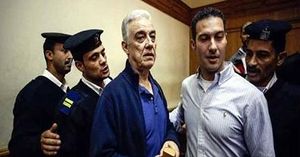 سامح فهمي وابنه سمير بعد تأكيد النقض لبراءته، 27 أكتوبر 2016.