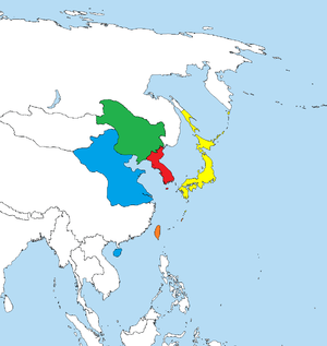 In the late Tokugawa shogunate, many advisers had thoughts of conquering different lands and setting up colonies. Honda Toshiaki mentioned that Japan should begin conquering the world and become the world's strongest nation to be their ultimate aim. For this, he suggested they occupy Manchuria, Sakhalin, and Kamchatka Peninsula first, and follow the lead of Europe in setting up overseas colonies.[3][4] Nobuhiro Sato also suggested that the procedure for ruling Asia is to capture Manchuria first, then East Asia, then South Asia. This became the strategy used by Japan in World War II.[4]