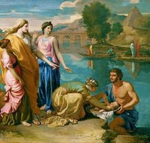 ابنة الفرعون تلتقط موسى من نهر النيل؛ لوحة لبوسان، 1638.
