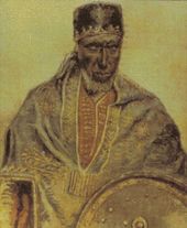 At first Alula attached himself to the distinguished Ras Araya Dimtsu, hereditary chief of Enderta who was lord of the land his father farmed; before long he gained the attention of Ras Araya's successful nephew, Dejazmach Kassa Mercha (the future emperor Yohannes IV), who made him his elfegn kalkay ("chamberlain and doorkeeper"). Erlich records an oral tradition that the young Alula distinguished himself by being the one who captured Tekle Giyorgis in the battle where Emperor Yohannes crushed his opponent (11 July 1871).[5] In spite of his humble backgrounds, Alulua succeeded in climbing the ladder of the feudal hierarchy.