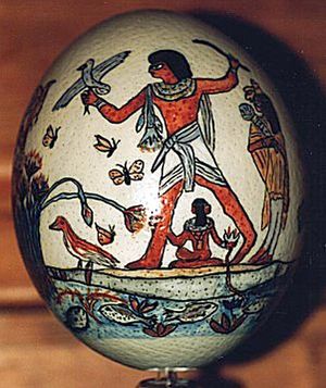 وقد تطورت هذه النقوش فيما بعد لتصبح لونًا من الزخرفة الجميلة والتلوين البديع للبيض ، حيث يعتبر البيض الملون مظهراً من مظاهر الاحتفال بعيد شم النسيم، ومختلف أعياد الفصح والربيع في العالم أجمع، واصطلح الغربيون على تسمية البيض (بيضة الشرق).
