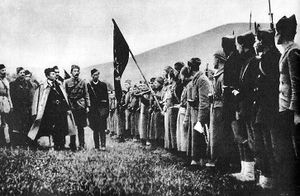 الجيش الصربي أثناء تحالفه مع ألبانيا، توفى أكثر من 1.000.000 صربي أثناء الحرب العالمية الأولى.