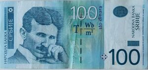 Nikola Tesla on a contemporary 100 دينار صربي bill.