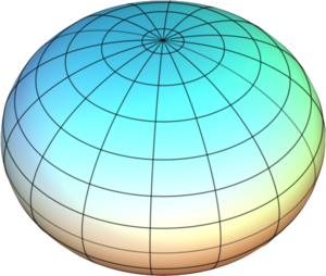 نظرًا لأن الأرض مسطحة عند القطبين ومنبعجة عند خط الاستواء، كان شبه الكرة المفلطح هو الصورة الهندسي المُستخدَم في علم المساحة كصورة تقريبي للأرض. وشبه الكرة المفلطح، أو مجسم القطع الناقص المفلطح، هو مجسم قطع ناقص دوراني يتكون نتيجة دوران قطع ناقص حول محوره الأقصر طولاً. ويُعرَف المجسم الكروي، الذي يصف صورة الأرض أو أي جسم سماوي آخر باسم مجسم قطع ناقص مرجعي. ومجسم القطع الناقص المرجعي للأرض يُسمَى مجسم القطع الناقص الأرضي.