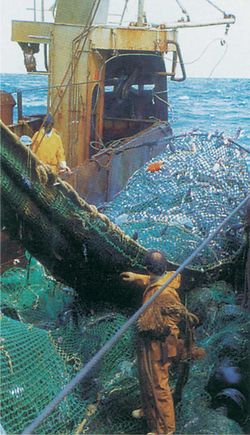 ومن المؤسف أن غالبية أساطيل الصيد التجارية والحِرْفية أسرفت في العقود القليلة الماضية، بحق كثير من المصايد المعطاء، مما أدى إلى تراجع إنتاجها، وتدهور مخزوناتها الحية، وخاصة الأنواع التجارية، كالتونة والقد والسلمون والإربيان. وقد رافق ذلك هبوط حاد في أعداد الثدييات البحرية، لوقوعها فريسة الشباك الطويلة، المعروفة باسم جدران الموت.