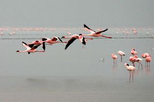 طيور فلامينغو في وادي بحيرة ريفت شرق افريقيا
