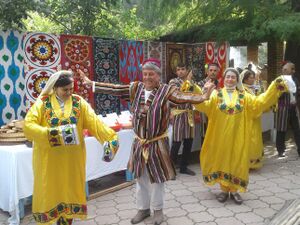 The Tajiks are an Iranian people, speaking a variety of Persian, concentrated in the Oxus Basin, the Farḡāna valley (Tajikistan and parts of Uzbekistan) and on both banks of the upper Oxus, i.e., the Pamir Mountains (Mountain Badaḵšān, in Tajikistan) and northeastern Afghanistan (Badaḵšān).[15] Historically, the ancient Tajiks were chiefly agriculturalists before the Arab Conquest of Iran.[16] While agriculture remained a stronghold, the Islamization of Iran also resulted in the rapid urbanization of historical Khorasan and Transoxiana that lasted until the devastating Mongolian invasion.[17] Several surviving ancient urban centers of the Tajik people include Samarkand, Bukhara, Khujand and Termez.