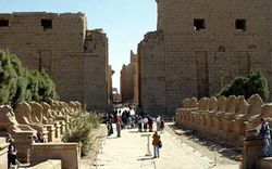طريق الكباش، طريق الكباش هو الطريق الذي يربط معبد الأقصر بمعبد الكرنك، كان يبدأ من الشاطئ شارع فسيح، تحف به تماثيل لأبى الهول نجدها في معابد الكرنك مثلت على شكل أبى الهول برأس كبش، والكبش هنا يرمز للإله آمون، ربما لحماية المعبد وإبراز محوره.