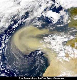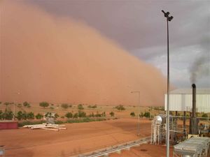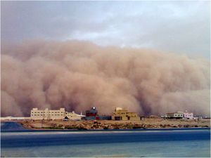 العاصفة الرملية ، هي عاصفة تحمل فيها الرياح كميات من الرمل في الهواء، وتشكل الرمال المحمولة في الرياح سحابة فوق سطح الأرض، ولا ترتفع معظم الرمال إلى أعلى من 50 سم، ولكن بعض حبات الرمل تصعد إلى ارتفاع مترين. ويتراوح متوسط قطر الحبات التي تحملها الرياح ما بين 0,15 و 0,30ملم. وخلال العواصف الرملية تصل سرعة الرياح إلى 16كم في الساعة وأكثر، كما يستمر هبوب العواصف من ثلاث ساعات إلى خمس ساعات. [1]