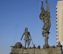 وتم إنجاز النصب البرونزي بطول 50 مترا ويضم 25 شخصية بالإضافة إلى الثور والحصان، ويعد أحد أكبر الأنصاب في العالم، خلال عامين في فلورنسا بإيطاليا ونُقل إلى بغداد عام 1961 بطائرة.