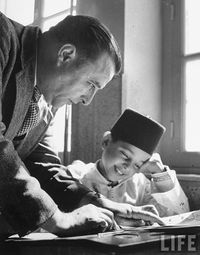 مولاي عبد الله العلوي طفلاً ووالده الملك محمد الخامس.
