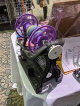 An electric spinning wheels, or e-spinner, is powered by an electric motor rather than via a treadle. Some require mains power while others may be powered by a low-voltage source, such as a rechargeable battery. Most e-spinners are smaller, more portable, and quieter than treadle wheels. One of the attractions of an e-spinner is that it is not necessary to coordinate treadling with handling the fibre (drafting), so it can be easier to learn to spin on an e-spinner than a traditional treadle-style spinning wheel. E-spinners are also suitable for spinners who have trouble treadling or keeping their treadling speed consistent.[31]