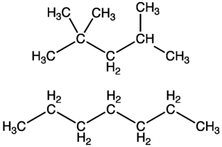 Isooctane (upper) has an octane rating of 100 whereas n-heptane has an octane rating of 0.