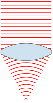 تعرف أيضا بالعدسات الموجبة أو العدسات المحدَّبة ويكون مركزها أسمك من أطرافها. وعندما تمر أشعة الشمس المتوازية خلال هذه العدسات، تنكسر إلى الداخل وتتقابل في نقطة تعرف باسم البؤرة. وتعرف المسافة الممتدة من مركز العدسة إلى نقطة البؤرة بالبُعد البؤري.
