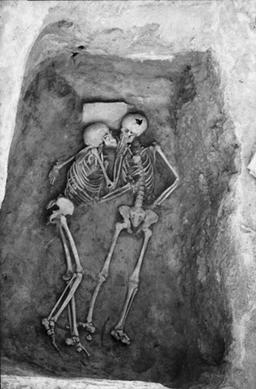 عُثر على الهيكلين العظميين البشريين معًا في سلة أثناء التنقيب ، ويبدو أنهما كانا متعانقين وقت الوفاة.[3] عُثر على إجمالي يقرب من 246 هيكل عظمي في الموقع.[6]