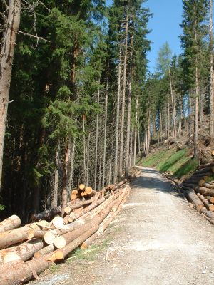وبعد حوالي 15 سنة من نمو الأشجار يجرى خف المحصول ، وتكرر هذه العملية على فترات ، حتى تبلغ الأشجار مرحلة النضوج. وتستحدم عدة نظم لحفظ الأشجار إلا أن كلها تقريبا تدور حول إبعاد الأشجار الأصغر حجما ، والأقل إنتظاما في شكلها وبذلك تفسح المجال للعينات الأفضل والأثمن. وأشجار الخف thinnings أقل قيمة من الأشجار البالغة ، غير أنه يمكن بيعها ، وإستخدام ثمنها في إدارة الغابة. وآخر العمليات هي إقتطاع الأشجار البالغة ، وإستخراج كتل الخشب منها. ثم تنقل كتل الخشب إلى المنشرة ، حيث تقطع إلى الشكل المطلوب.