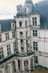 واحدة من أكثر الملامح التي نُسخت على نطاق واسع لعمارة النهضة هي السلالم العظيمة من قلاع بلوا وشامبور.[6] كانت قلعة بلوا مقر الإقامة المفضل للملوك الفرنسيين طوال فترة النهضة. أحد أقدم الأمثلة على عمارة عصر النهضة الفرنسية كان جناح فرانسيس الأول، الذي اكتمل بناءه في عام 1524، ويعد الدرج جزءًا لا يتجزأ منه. مثلّت عمارة النهضة الفرنسية مزيجًا من الطراز القوطي السابق إلى جانب تأثير إيطالي قوي تَمثل في الأقواس والممرات والدَرَابَزُونات، وبشكل عام تَوجُه تصميمي أكثر حرية مما كان في العصر القوطي السابق. تم تقليد درج قلعة بلوا الانتصاري منذ لحظة الانتهاء من بناءه تقريبًا، والذي كان بالتأكيد سابقًا ل «الدرج المزدوج» (الذي يُنسب أحيانًا إلى ليوناردو دا فينشي) في قلعة شامبور والذي بني بعد بضع سنوات.