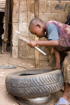 اعتبارا من 2023[تحديث], in the world's poorest countries, around one in five children are engaged in child labour, the highest number of whom live in sub-saharan Africa, where more than one in four children are so engaged.[13] This represents a decline in child labour over the preceding half decade.[14] In 2017, four African nations (Mali, Benin, Chad and Guinea-Bissau) witnessed over 50 percent of children aged 5–14 working.[14] Worldwide agriculture is the largest employer of child labour.[15] The vast majority of child labour is found in rural settings and informal urban economies; children are predominantly employed by their parents, rather than factories.[16] Poverty and lack of schools are considered the primary cause of child labour.[17] UNICEF notes that "boys and girls are equally likely to be involved in child labour", but in different roles, girls being substantially more likely to perform unpaid household labour.[13]