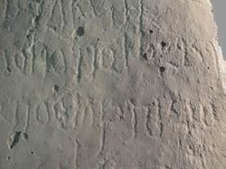 ذكير لمنقرا قدس عبدت الها وذكير []من [....................] جرم الهي بر تيم الهي صلم لقبل عبدت الها فيفعلو لا فدا ولا اثرا فكن هنا يبغنا الموتو لا ابغهو من هنا ادد جرحو لا يردنا جرم الهي كتب يده