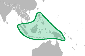 The island of New Guinea lies to the east of the Malay Archipelago, with which it is sometimes included as part of a greater Indo-Australian Archipelago.[16] Geologically it is a part of the same tectonic plate as Australia. When world sea levels were low, the two shared shorelines (which now lie 100 to 140 metres below sea level),[17] and combined with lands now inundated into the tectonic continent of Sahul,[18][19] also known as Greater Australia.[20] The two landmasses became separated when the area now known as the Torres Strait flooded after the end of the last glacial period.
