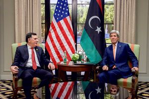 السراج برفقة رئيس الوزراء الأمريكي جون كري، 16 مايو 2016.