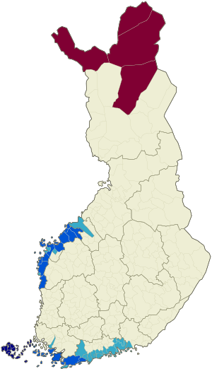 The name Suomi (فنلندية for 'Finland') has uncertain origins, but a common etymology with saame (the Sami) has been suggested.[30][31] In the earliest historical sources, from the 12th and 13th centuries, the term Finland refers to the coastal region around Turku. This region later became known as Finland Proper in distinction from the country name Finland.[32]