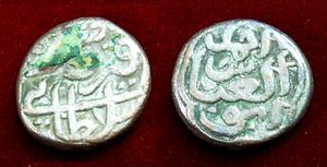 Upon Muhammad bin Tughluq's death, Firuz Shah succeeded the throne on 23 March 1351, on the banks of Sindh. According to the Tarikh-i-Firuz Shahi, a group of Mongols had plundered a baggage train and were advancing to Firuz's camp leading to a battle wherein the latter was victorious and the captives secured by the Mongols set free. The defeated Mongols fled their camps back to their own countries, securing Firuz Shah's first victory as emperor.[11] During this time it was thought by the Khwaja-i-Jahan of the empire through misinformed intelligence that Firuz Shah was missing and presumed dead, causing him to place Mahmud, an allegedly imposter son of Muhammad bin Tughluq on the throne but upon finding out that Firuz was alive he gathered an army of twenty thousand at Delhi until peace was made. Firuz hearing of this unanimously agreed with his nobles that Muhammad bin Tughluq had only one daughter and thence marched through Multan, Dipalpur and Ajodhan, gathering a large army of soldiers, nobles, and commoners from these cities for his march to Delhi, including thirty six Rajas of this region, he also completed a pilgrimage to the tomb of Baba Farid.[12] According to this same tradition, whilst marching to Delhi, Firuz received a son, naming him Fateh Khan and founded the town of Fatehabad after him at the place of his birth.[13] The Khawaja-i-Jahan had set to Fatehabad and sued for peace pleading with Firuz for his mistake, securing Firuz's rule.[14]