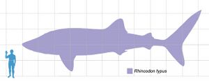 - The whale shark is the largest species in this order, reaching up to 20 meters long when fully mature.[53] No other species in the order even approaches this size. The next largest species is the nurse shark (Ginglymostoma cirratum), which can grow up to 4.3 m (14 ft) across the disk and weighing more than 350 kg (770 lb).[54]