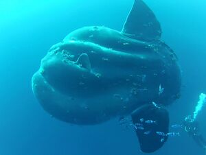 The largest living bony fish (superclass Osteichthyes, which includes both ray-finned and lobe-finned fish) are the lesser known southern sunfish (Mola alexandrini) followed by widely distributed and better known ocean sunfish (Mola mola) and, both being members of the order Tetraodontiformes. The largest verified specimen belongs to the southern sunfish discovered dead near the Azores in the Atlantic has set the record for being the largest extant bony fish with the weight of 2,744 kg (6,049 lb). The record size ocean sunfish crashed into a boat off Bird Island, Australia in 1910 and measured 4.3 m (14 ft) from fin-to-fin, 3.1 m (10 ft) in length and weighed about 2،300 kg (5،100 lb),[4] while the other record for the biggest bony fish is yet held by a Mola alexandrini which was also coincidentally 2,300 kg in mass and 3.0 m in length, caught off in 1996 and misidentified as a Mola mola.[73][74]