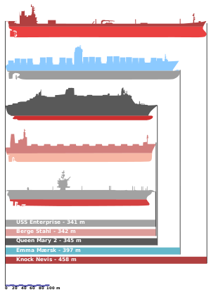 مقارنة أحجام خمسة أنواع من السفن. انقر للتكبير.