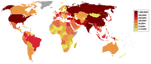 | 3. | الهند ** | 1,325[16] | 1,155[16] | 27[17] | 3,978[2] | 1[18] | 8 | 13 | 32 | 16 | 1,430[19] | 45-95[20] | ||||