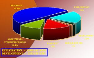 | مناطق التنقيب | 199 500 كم² |