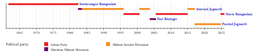 | 1 | Sir Anerood Jugnauth | 18 years, 225 days |