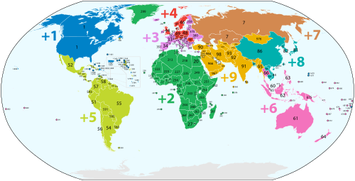 | روسيا | +7[notes 2] | UTC+02:00 to +12:00 | |
