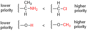 CH2CH2CH3 تكون له أولوية عن CH(CH3)D ،بالرغم من أن CH2D يتغلب على CH3. (لاحظ أن D نظير من نظائر H ولكنه أثقل).