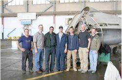 فريق صيانة أمريكي مع احدى المقاتلات إف - 16 المعطوبة في قاعدة بني سويف الجوية. في يناير 2011. المصدر: مجلة القوات الجوية الأمريكية.