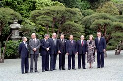 The first official state guest at the renovated palace was Gerald Ford in 1974, which was the first visit of the incumbent President of the United States to Japan. Since then, the palace has provided accommodations for state and official guests and a venue for international conferences, which have included the G7 summit meetings (1979, 1986 and 1993) and APEC[2] summits.