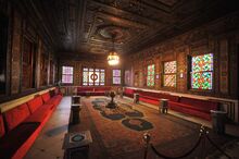 - سراي الاستقبال: كان الغرض منها استقبال الضيوف الرسميين، وتحتوي على تحف نادرة منها سجاد وأثاث ومناضد عربية مزخرفة، وتتكون السراي من طابقين، الأول يضم حجرة التشريفة لاستقبال الشخصيات الرسمية وكبار رجال الدولة والسفراء وحجرة استقبال كبار المصلين مع الأمير في مسجده بالقصر، والثاني العلوي يضم قاعتان كبيرتان صممت إحداهما على الطراز المغربي حيث كسيت جدرانها بالمرايا والبلاطات القيشاني، أما القاعة الأخرى فصممت على الطراز الشامي حيث كسيت الجدران ومعها السقف بأخشاب عليها زخارف هندسية ونباتية ملونة دقيقة التنفيذ بجانب كتابات قرآنية وأبيات من الشعر.