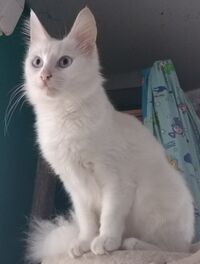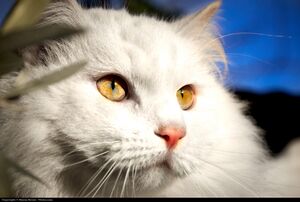 Turkish Angora cat at the Atatürk Forest Farm and Zoo in Ankara. The zoo breeds and sells Turkish Angora cats.[1] | |