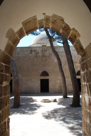 وإذا ما تابعنا المسير، فإننا سنصل إلى مسجد إبراهيم الخليل الذي أنشأه الملك الصالح اسماعيل بن محمود بن زنكي سنة 536هـ/1179م. وعلى مدخل المسجد، وعلى جدرانه كتابات تأريخية. ويلي هذا المسجد بناء آخر هو مسجد ذو مئذنة مربعة عالية، أنشئت في عصر الملك الظاهر غازي بن صلاح الدين الأيوبي. وليس بعيداً عن هذا المسجد الذي رمم مؤخراً، تقوم ثكنة عسكرية أنشئت في عصر إبراهيم باشا المصري سنة 1252هـ/1834م. وفي وسط هذه الرابية قاعة كبيرة، نصل إليها من خلال سبعين درجة تحت السطح، كانت تستعمل مستودعاً للحبوب والعلف ومن القصور التي مازالت قائمة، قصر يوسف الثاني حفيد غازي، مزين مدخله بمقرنصات جميلة، وأمامه ساحة مرصوفة بأحجار صغيرة ملونة ذات رسم هندسي بديع.
