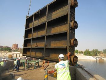 The Ibrahimiya head regulator structure, which was built at the same time when the Assiut Barrage was being constructed, was of similar design to the barrage except having only nine 5 m wide sluices, and a 9 m wide lock.