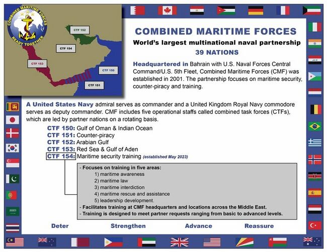 وبحسب البيان الأمريكي، فإن قوة المهام المشتركة 153، هي واحدة من أربع فرق عمل للقوات البحرية المشتركة، وتم تأسيسها في 17 إبريل 2022، لتعزيز الأمن البحري الدولي وجهود بناء القدرات في البحر الأحمر وباب المندب وخليج عدن.