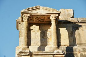 قوس كركلا هو Roman triumphal arch located at Djémila in Algeria (Cuicul). It was built during the early 3rd century. The arch, with a single span (fornix), was placed on the road leading to Sitifis. It constituted the entrance to the city's Severan forum.