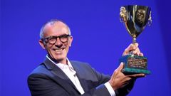 كامل الباشا يحمل جائزته كأفضل ممثل في مهرجان البندقية السينمائي الدولي 2017، عن دوره في فيلم القضية رقم 23.