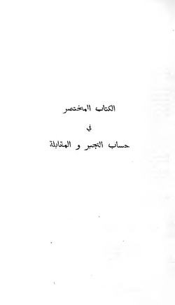 كتاب المختصر في في حساب الجبر والمقابلة [1] هو كتاب في الرياضيات كتب بالعربية بين 813 و 833 من قبل عالم الرياضيات المسلم الخوارزمي. في هذا الكتاب، وضع الخوارزمي أسس علم الجبر كونها أول دراسة منهجية لحل معادلة من الدرجة الأولى والثانية. وقد عمل خلفاء الخوارزمي على توسيع نطاق عمله في كتب أخرى التي غالبا ما تحمل نفس العنوان.