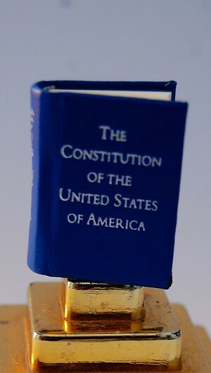 Miniature books were produced for personal convenience. Miniature books could be easily be carried in the pocket of a waistcoat or a woman's reticule. Victorian women used miniature etiquette books to subtly ascertain information on polite behavior in society.[7] Along with etiquette books, Victorian women that had copies of The Little Flirt learned to attract men by using items already in their possession, such as, gloves, handkerchiefs, a fan and parasol.[8] In 1922, miniature books regained popularity when 200 postage stamp sized books were created to be displayed in the miniature library of Queen Mary's miniature doll house.[7] Princess Marie Louise, a relative of Queen Mary also requested that living authors contribute to the existing dollhouse library. Following in Queen Mary footsteps, many miniature book collectors begin collecting miniatures for their dollhouse libraries.[9] A miniature book has even been to the Moon. In 1969, Apollo 11 astronaut Buzz Aldrin had a miniature book in his possession during his flight to the Moon. It was an autobiography of Robert Hutchings Goddard, who invented the first liquid-propellant rocket that make space flight possible.[8]