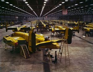 قاذفات ب-25 متشل، مطلية بطلاء تحتاني من كرومات الزنك، أثناء تجميعهم، 1942
