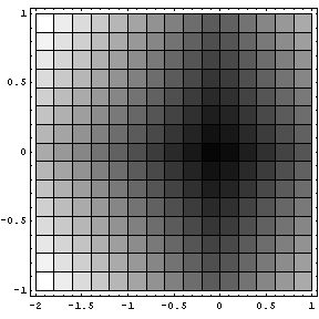 لنفترض تابع كمون كيميائي معرف على مساحة ثنائية البعد موضحة في الشكل جانبا. تميل الجزيئات إلى التحرك من المناطق ذات الكمون الكيميائي العالي (الذي يبدو بلون باهت في المخطط) إلى المناطق ذات الكمون الكيميائي المنخفض (الذي يبدو بلون غامق في المخطط).