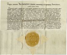 سلم في مدينة سانت پطرسبورگ يوم 1 ديسمبر 1784 من قبل امبراطورتنا، وذلك في السنة الثالثة والعشرين لحكمها القيصري.